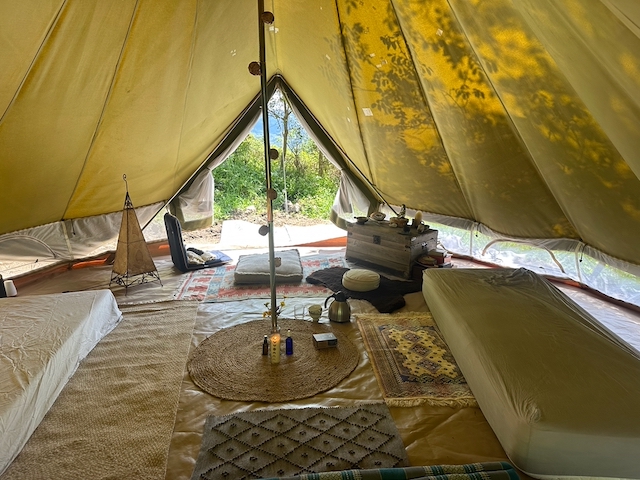 Het geniale van het universum is dat ik daardoor wel naar binnen moest om in mezelf die verbinding te vinden. Ik besloot om elk moment van eenzaamheid echt te gaan voelen. Ik heb er zelfs een grote tent voor gekocht en die op het land opgezet. Mijn tempel om te zijn met wat er was. Wat een rijkdom. Drummen, huilen, schreeuwen, bidden, verstillen. Ik voelde me daarna de openheid in m’n hart, vertrouwen, verbonden met de essentie. Dat wilde ik delen. Ik nodigde andere vrouwen uit om mee te komen doen, te delen, te voelen, thuis te komen in onszelf. Het begin van hopelijk nog heel veel vrouwencirkels die ik wil faciliteren. Zo dankbaar voor die momenten van verbinding. Mijn verlangen en liefde naar de bron is groter dan ooit. Misschien toch geen toeval dat we het land Na Fonte hebben genoemd: bij de Bron.